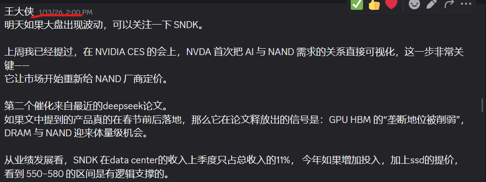 上周 SNDK 财报后大涨,但随后高开低走。在回调到 600 的时候,我已经把 SNDK的大部分仓位止盈。