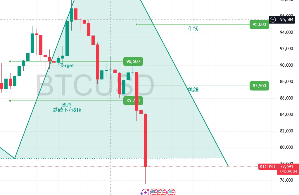 我已经连续两三个月在更新中提醒过,BTC处在空头趋势。上周也提醒了,跌破85700,下方就是81000.