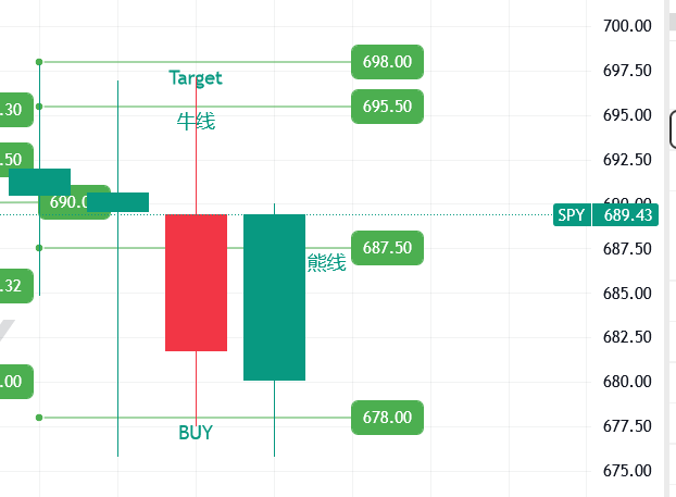 只要 SPY 能稳在熊线之上,我认为下周是有机会去挑战牛线 695 的。