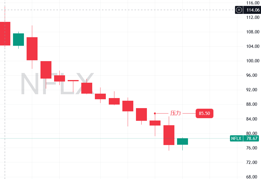 从趋势角度来看,奈飞目前处在一个非常明确的下行趋势中。