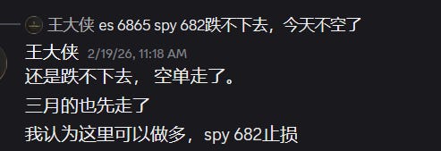 到了周四,我明确提醒这里不能再看空。因为 SPY 既没有有效跌破 678,也没有跌破 682,所以当时我把所有空单全部平掉。事后看,这个判断也是正确的——到周五收盘,SPY 已经反弹回 687.5,也就是我标注的熊线。