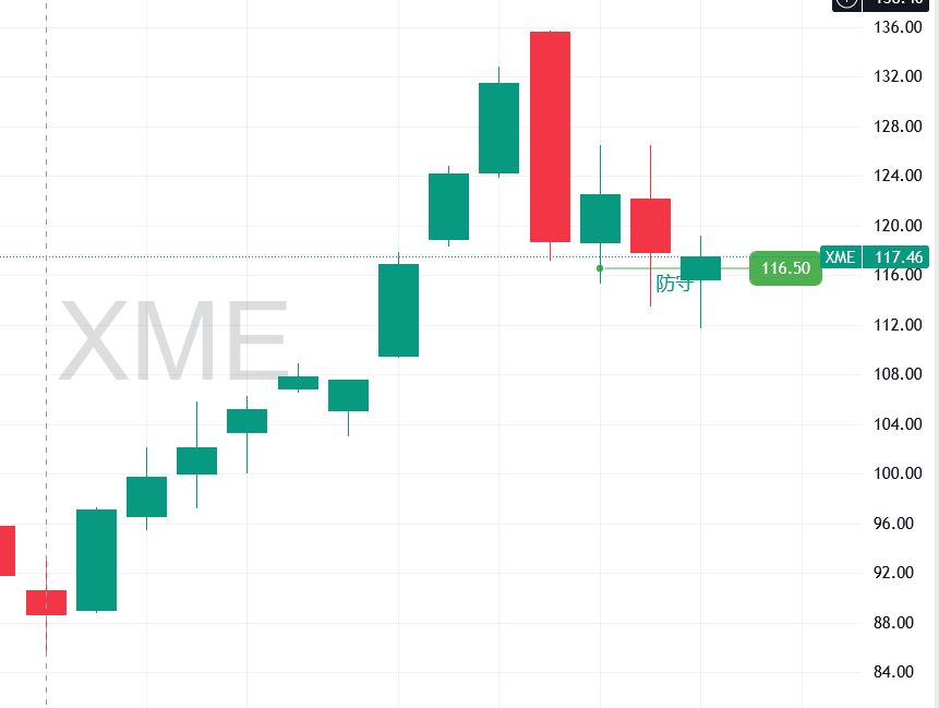 从技术面来看,XME上周收盘站稳 116.5 的防守位
