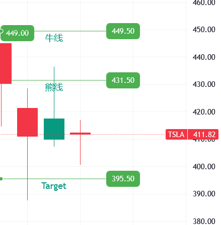 特斯拉如果想要真正扭转当前的震荡格局,必须站上 441-牛线 449,否则整体仍然只能按区间震荡来看。