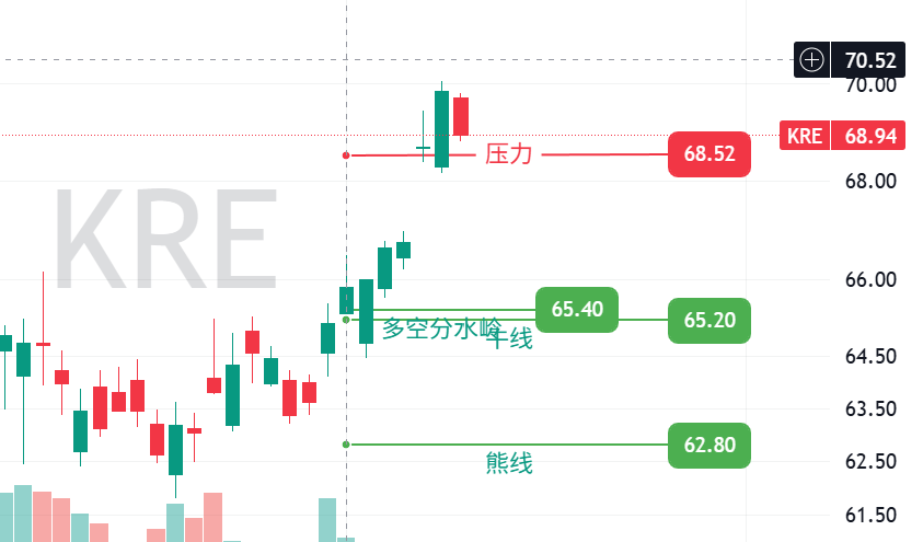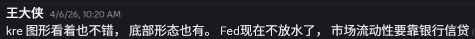 上周在群里提示的KRE,一周涨了6.7%,对于传统行业指数,这个涨幅不小。