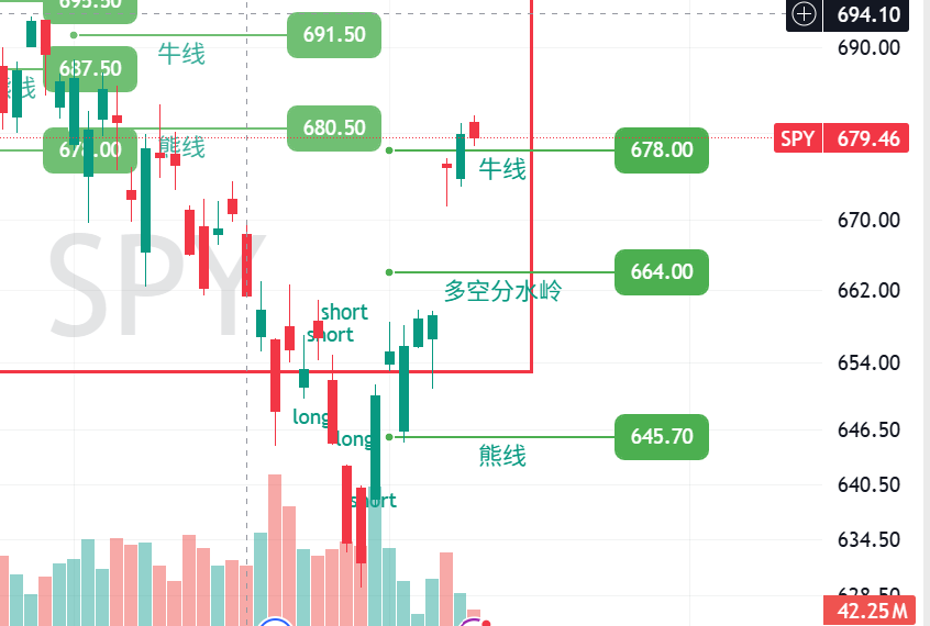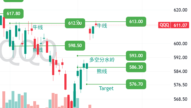 SPY上周直接跳空多空分水岭,越过牛线。 这里短期比较超买,这里可以横盘消化买压。