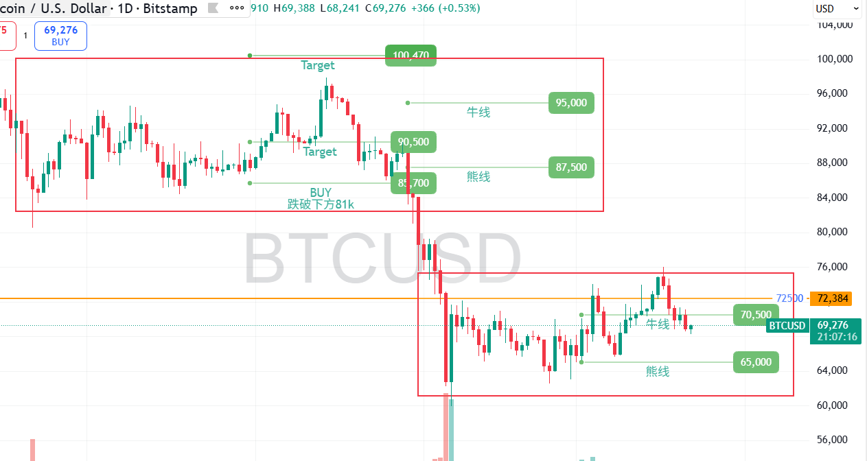 上周复盘说的BTC,看72K是假突破,也验证了。